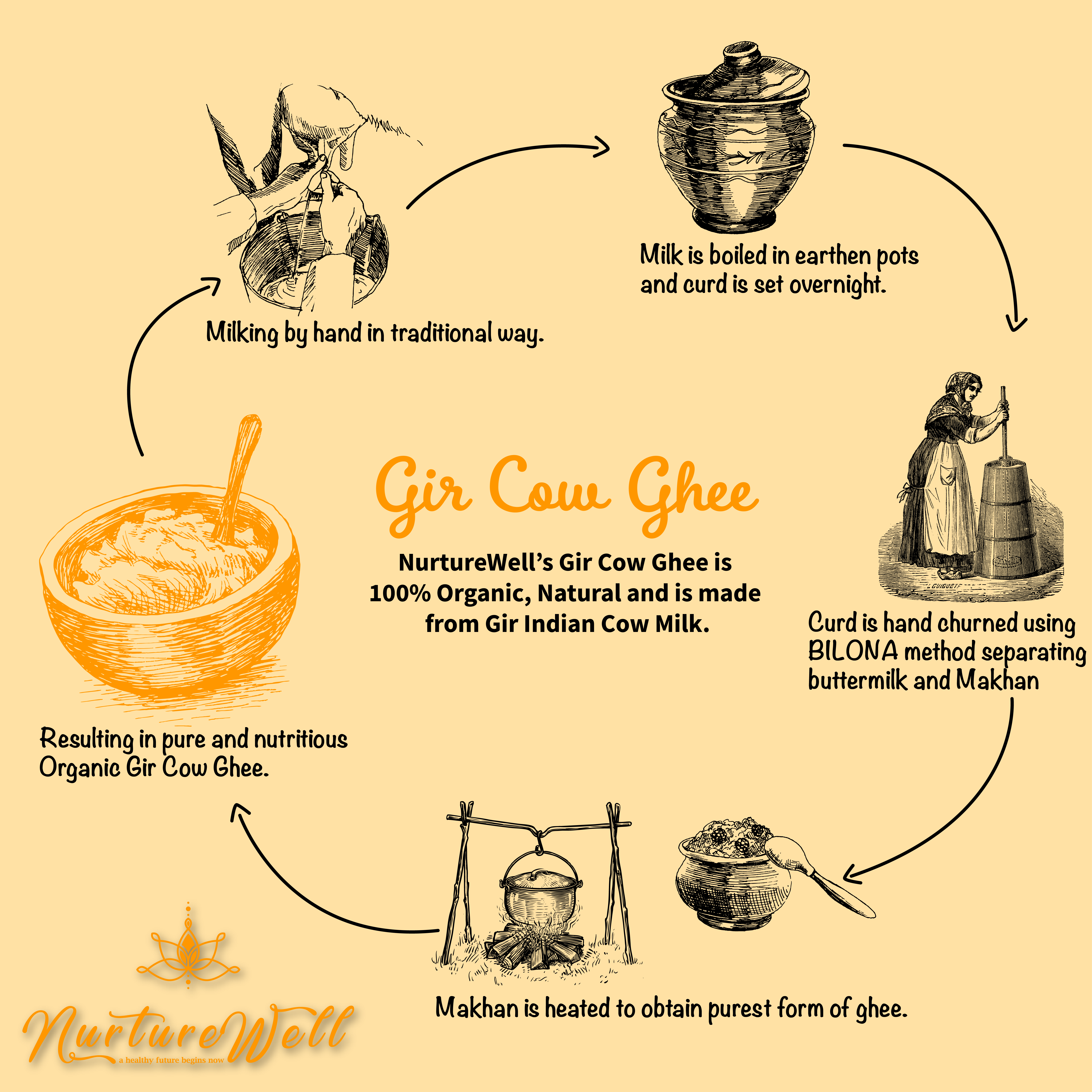 NurtureWell’s Gir Cow Ghee is 100% Organic, Natural and is made from Gir Indian Cow Milk